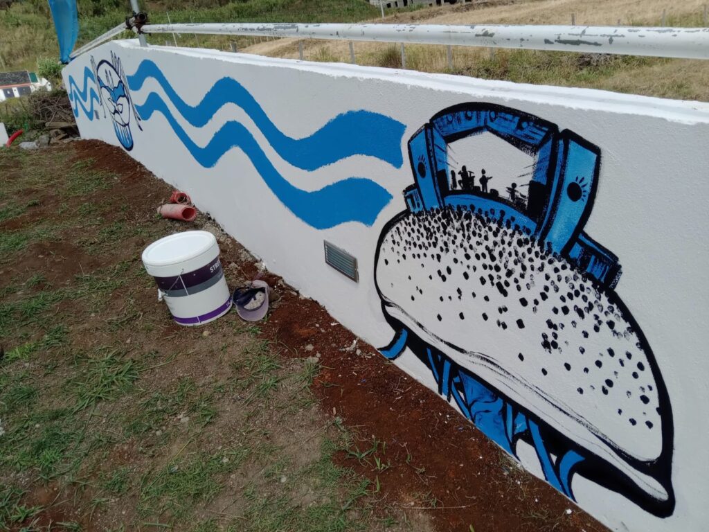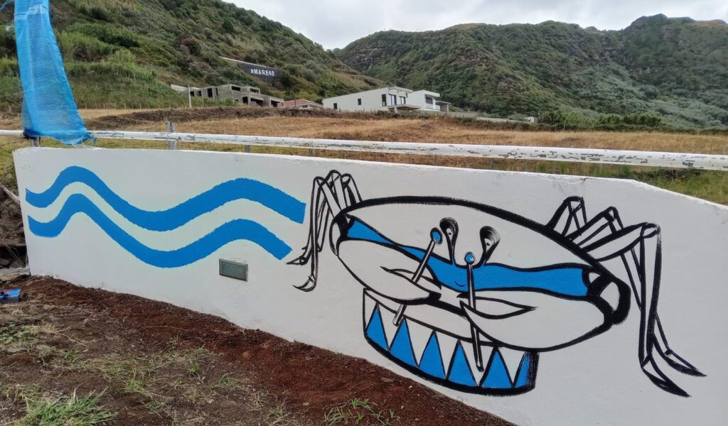 Ci contre, les photos des différents projets de fresques murales entre le Cap Vert, les Açores, le sud du Portugal ou la Bretagne.